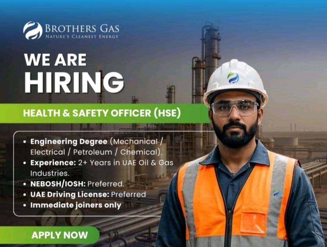 If you’re an HSE professional with UAE oil and gas experience, here’s a solid opportunity. Brothers Gas is looking for a Health & Safety Officer (HSE) to join their team in Dubai and Ras Al Khaimah. The best part? They need immediate joiners only, so the process should move fast.