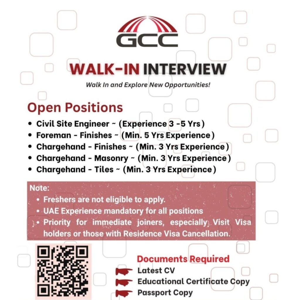 Looking for a construction job in Dubai? GCC (Gingo Contracting Co. LLC) is hosting a walk‑in interview from 27 April to 2 May 2026 at their Mudon site office. If you have UAE experience and are ready to join immediately, this could be your next career move.