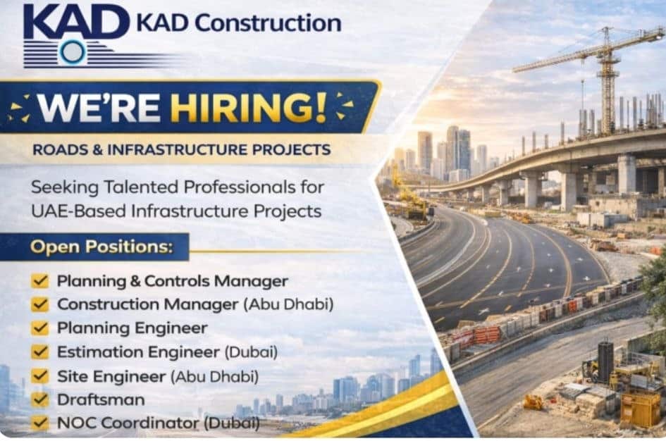 If you’re an engineer, planner, drafter, or coordinator looking for a solid opportunity in the UAE’s infrastructure sector, here’s some good news. KAD Construction is actively hiring for multiple roles across Abu Dhabi and Dubai for their upcoming roads and infrastructure projects in 2026.