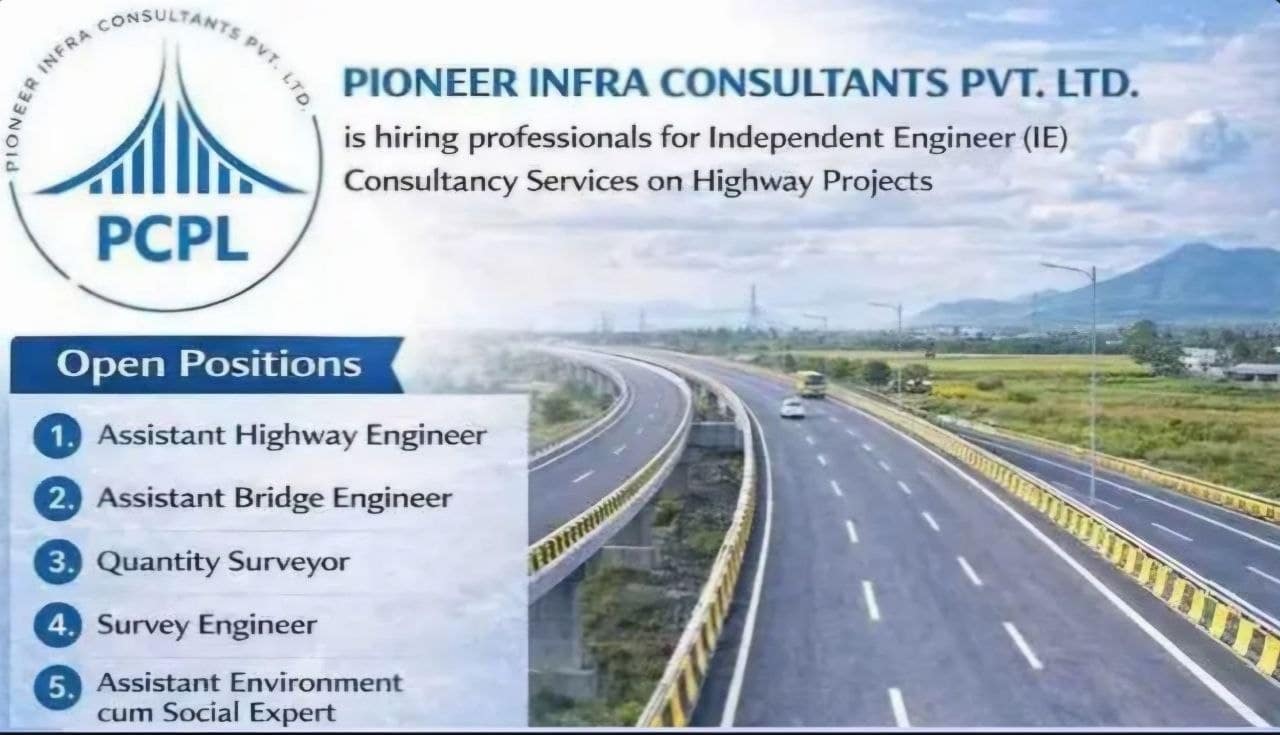 If you’re a highway professional looking for a fresh consultancy role in Rajasthan, here’s good news. Pioneer Infra Consultants Pvt. Ltd. is recruiting for Independent Engineer (IE) Consultancy Services on highway projects. Multiple positions are open, and the application process is already live.