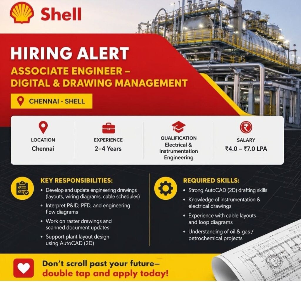 If you’re an Electrical or Instrumentation Engineer with 2–4 years of experience and strong AutoCAD skills, Shell has just opened a door that’s hard to ignore.