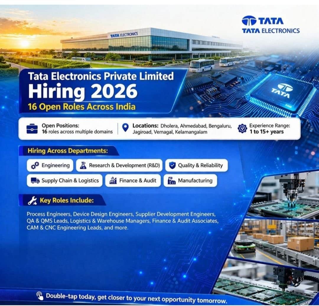 If you’ve been waiting for a solid opportunity in semiconductor manufacturing, R&D, or advanced engineering, Tata Electronics has just opened its doors for 2026. With over 16 roles spread across six locations in India, this drive is targeting everyone from entry-level professionals (1+ year experience) to seasoned experts (15+ years).