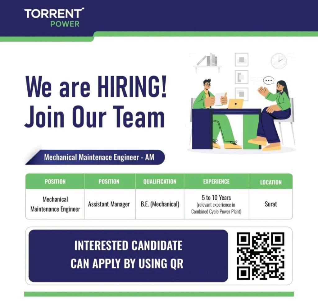 - Alternatively, check their careers page at torrentpower.com → look for “Assistant Manager – Mechanical Maintenance, Surat”.