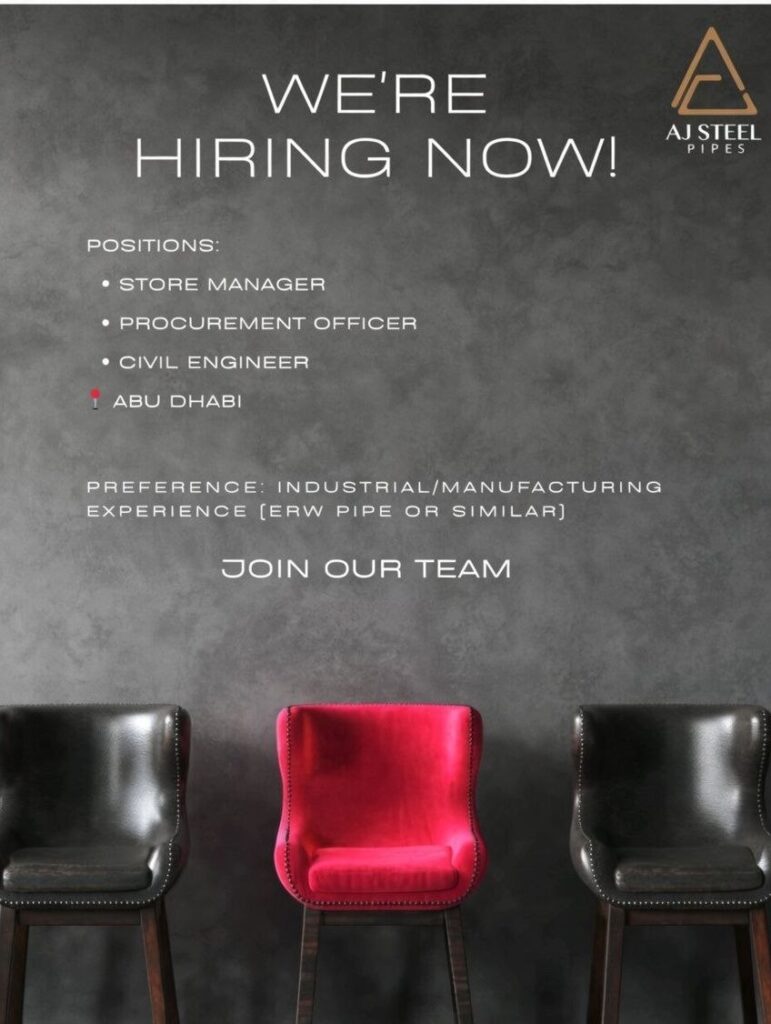 AJ Steel Pipes is actively hiring for three key positions. The company prefers candidates with experience in manufacturing, especially in ERW pipe or similar industrial sectors.